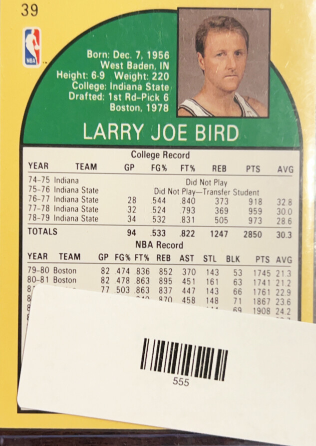 You are purchasing a 1989 NBA Hoops Larry Bird #39. You will receive the exact item in the photographs. Thank you for looking.