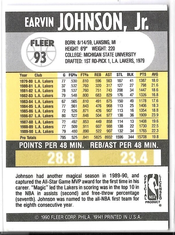 1990 Fleer Magic Johnson #93.