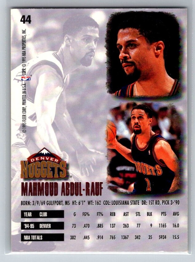 You are purchasing a 1995-96 Ultra Mahmoud Abdul-Rauf #44. You will receive the exact item in the photographs. Thank you for looking.