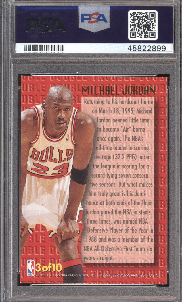You are purchasing a 1995 Fleer Ultra Basketball Michael Jordan #3 Double Trouble PSA 9. You will receive the exact item in the photographs. Thank you for looking.