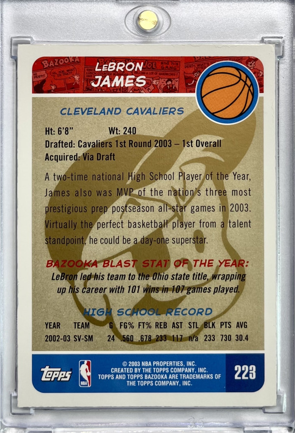 2003 Bazooka Lebron James Gold RC