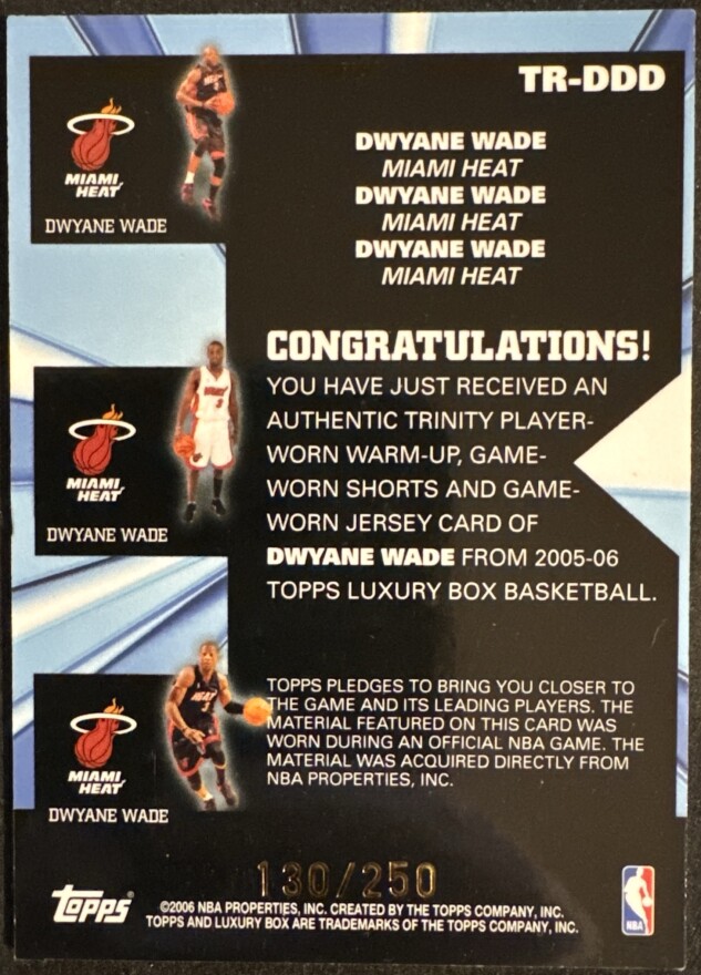 2005-06 Topps Luxury Box Trinity Triple Relics Dwayne Wade Player Worn /250