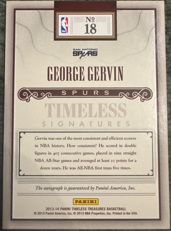 2013-14 Timeless Treasures George Gervin Signatures 4/5