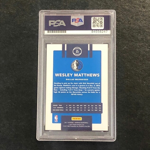 This listing features a 2017-18 Panini #33 Wesley Matthews, professionally PSA authenticated.