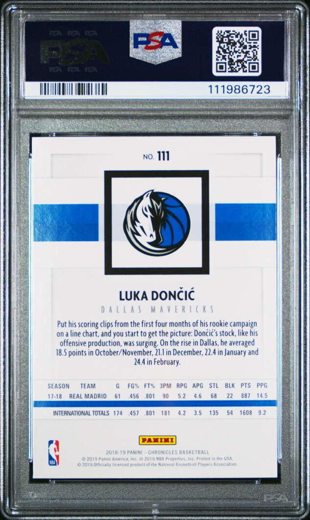 You are purchasing a 2018 Panini Chronicles Basketball Luka Doncic #111 RC PSA 10. You will receive the exact item in the photographs. Thank you for looking.