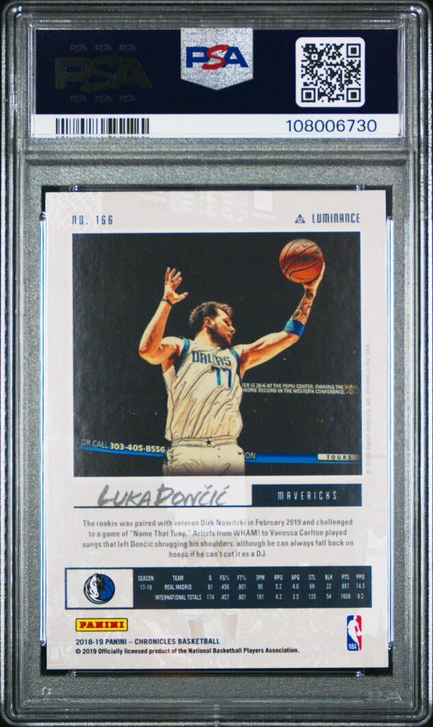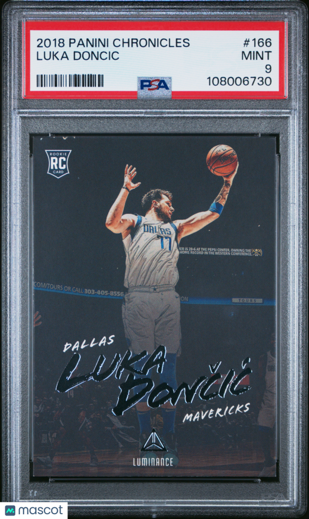 You are purchasing a 2018 Panini Chronicles Luka Doncic #166 Luminance Mint RC PSA 9. Thank you for looking.