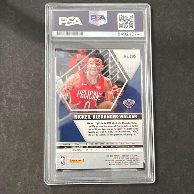 This listing features a 2019-20 Panini #205 Nickeil Alexander-Walker, professionally PSA authenticated.