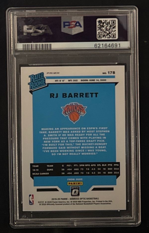 2019 Panini Donruss Optic Rj Barrett Gold Wave