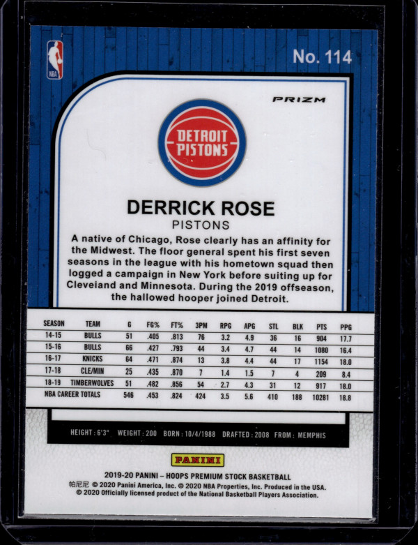 You are purchasing a 2019 Panini Hoops Premium Stock Derrick Rose #114 Gold. You will receive the exact item in the photographs. Thank you for looking.