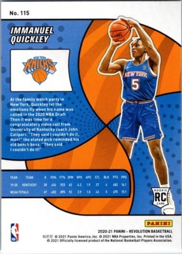 This is a nice example of a 2020-21 Panini Revolution #115 Immanuel Quickley
