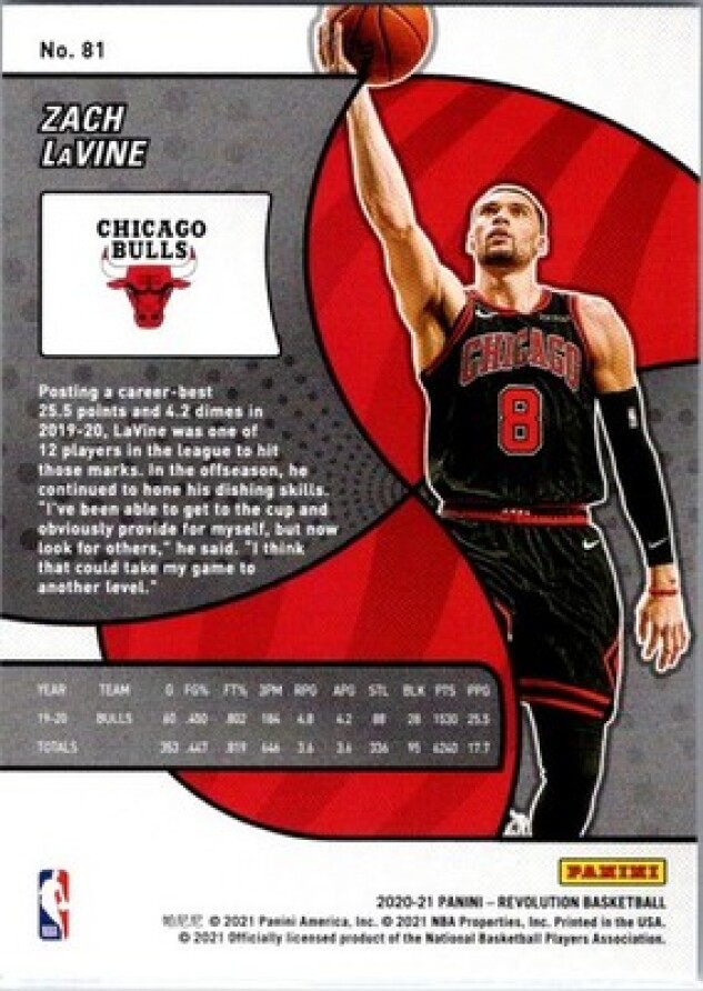 This is a nice example of a 2020-21 Panini Revolution #81 Zach LaVine