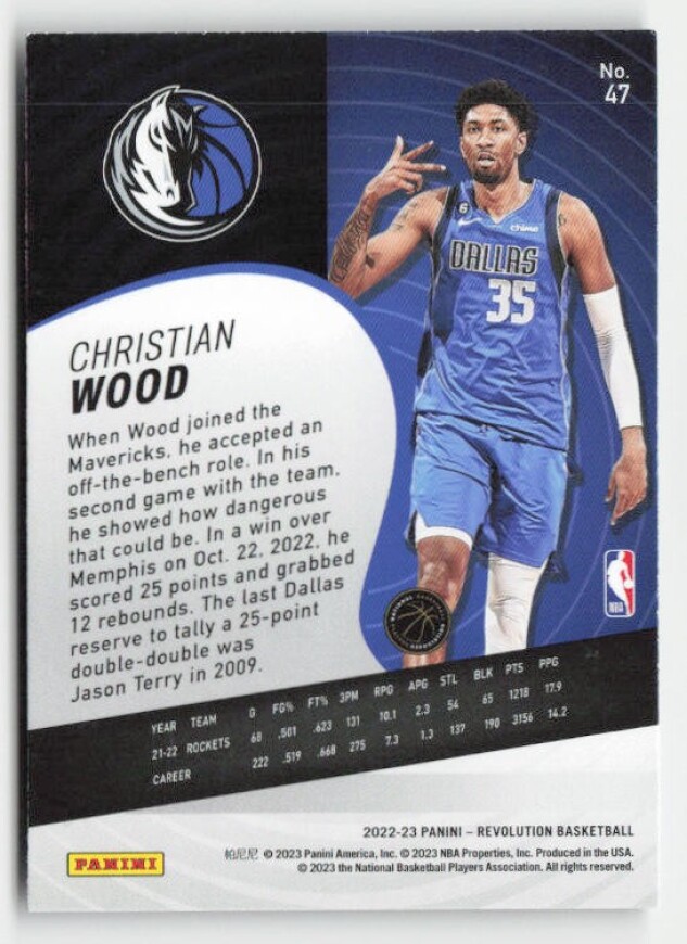 You are purchasing a 2022-23 Panini Revolution Christian Wood #47. You will receive the exact item in the photographs. Thank you for looking.