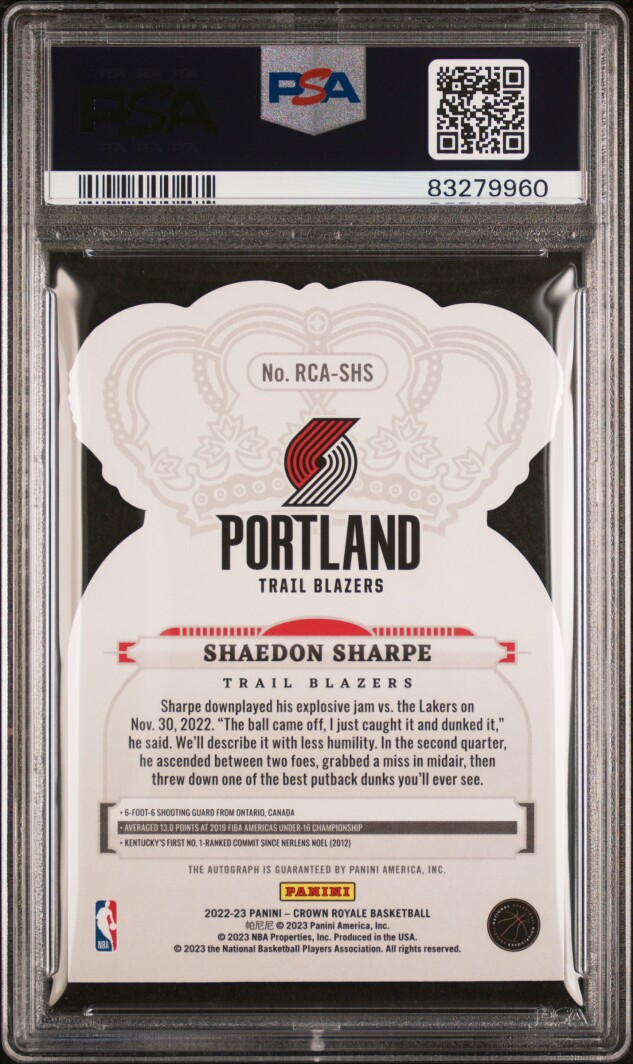 2022 Panini Crown Royale Rookie Crown Autographs Shaedon Sharpe Rookie Crown Autograph
