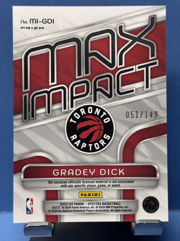 2023-2024 Panini Spectra #MI-GDI Gradey Dick Silver Prizm Patch #/149