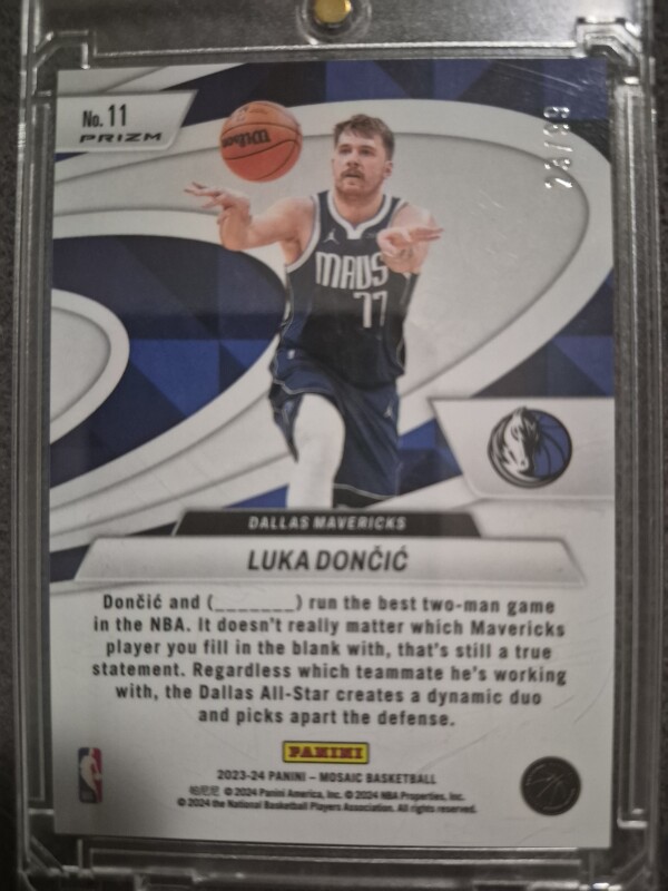 2023-24 Panini Mosaic #11 Luka Doncic Give And Go Mosaic Reactive Blue #/99