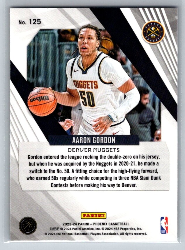 You are purchasing a 2023-24 Panini Phoenix Aaron Gordon #125. You will receive the exact item in the photographs. Thank you for looking.