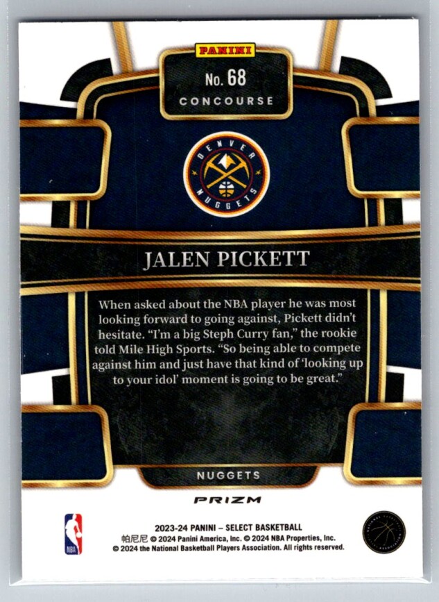 You are purchasing a 2023-24 Panini Select Jalen Pickett #68 Blue Cracked Ice RC. You will receive the exact item in the photographs. Thank you for looking.