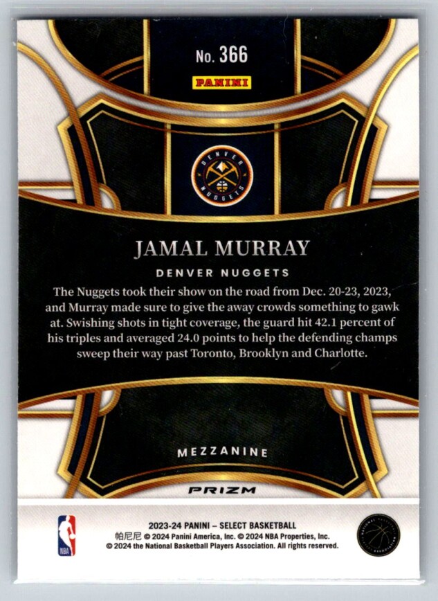 You are purchasing a 2023-24 Panini Select Jamal Murray #366 Blue Cracked Ice. You will receive the exact item in the photographs. Thank you for looking.