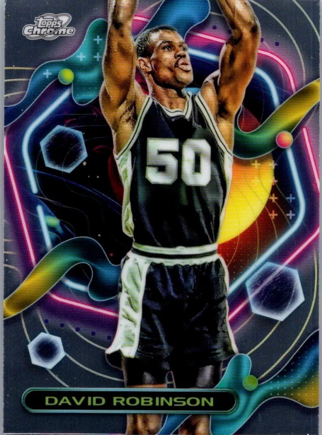 This is a nice example of a 2023-24 Topps Chrome Cosmic #112 David Robinson Refractors