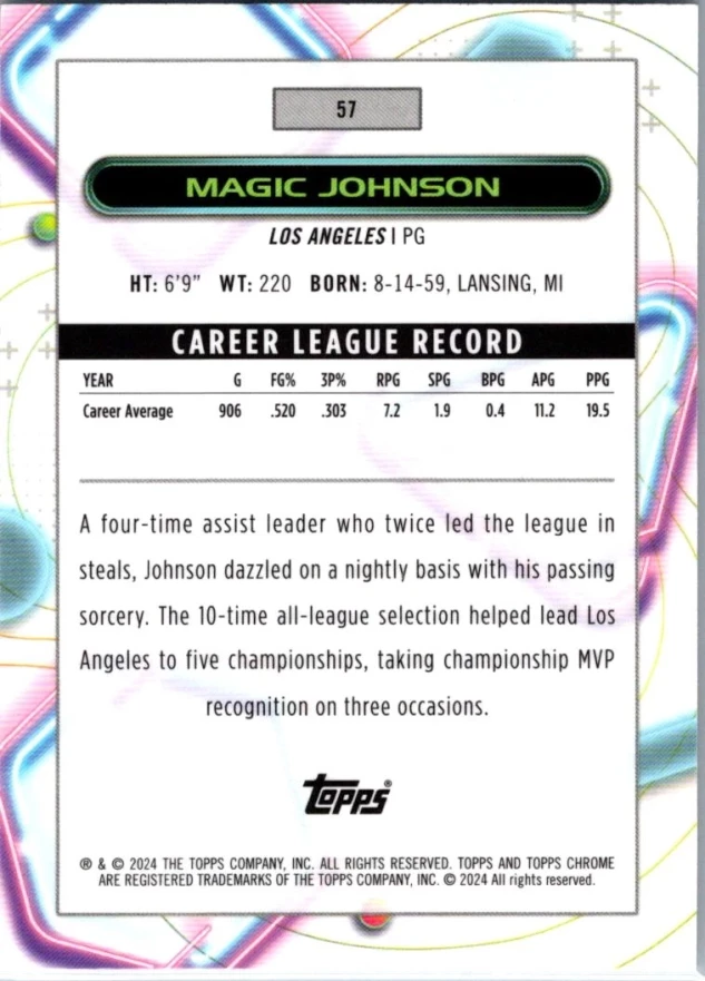 This is a nice example of a 2023-24 Topps Chrome Cosmic #57 Magic Johnson