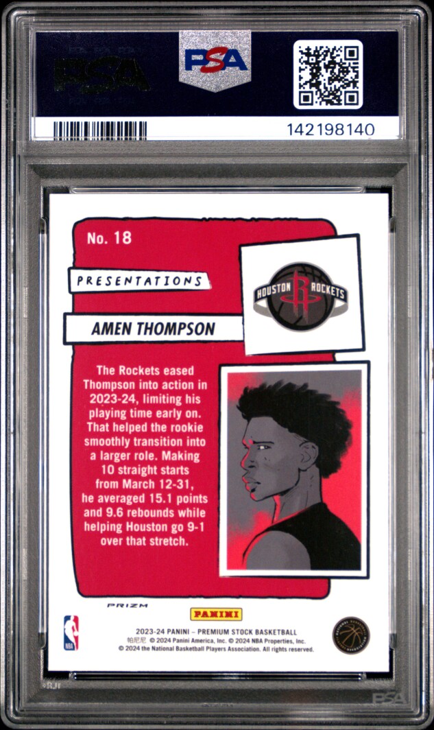 You are purchasing a 2023 Panini Hoops Premium Stock Presentations Amen Thompson #18 PSA 10. You will receive the exact item in the photographs. Thank you for looking.