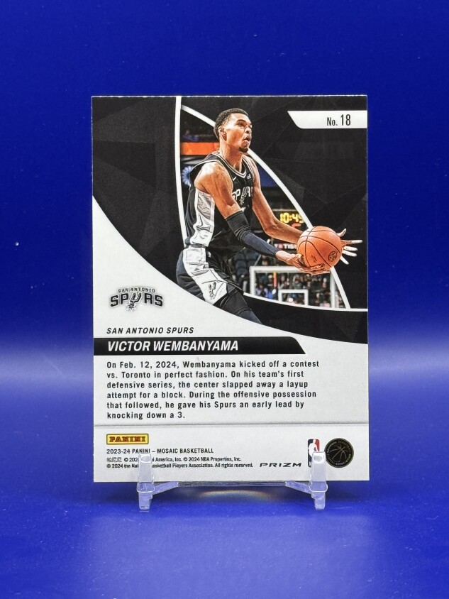 Manufactured by Panini and kept in excellent condition, this card showcases Wembanyama's incredible talent and potential. Secure this standout collectible today and elevate your NBA trading card collection with one of the most talked-about rookies of 2023!