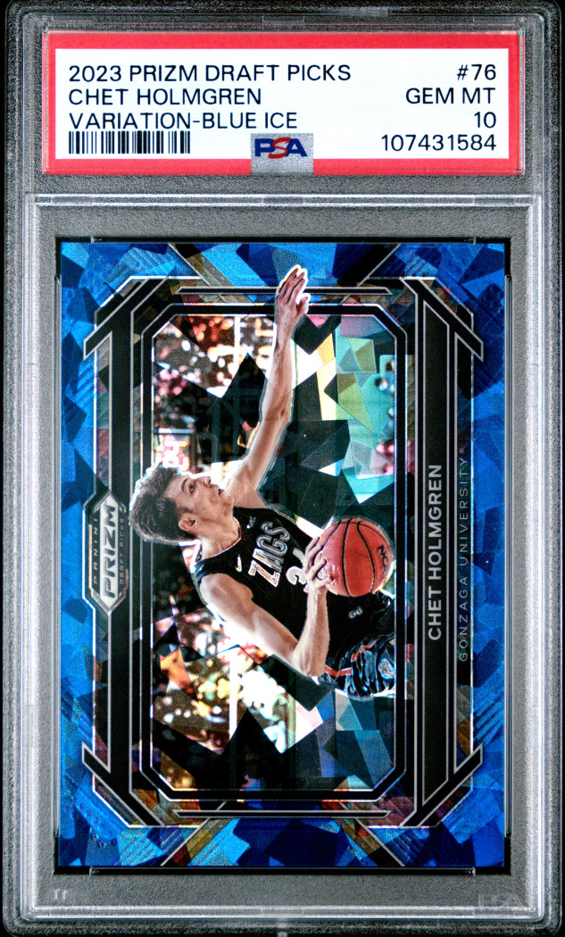 2023 Panini Prizm Draft Picks Chet Holmgren #76 Blue Ice Variations /99 PSA 10