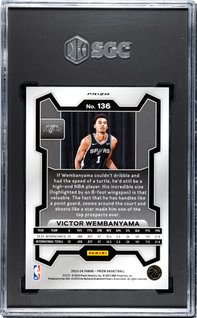 You are purchasing a Victor Wembanyama #136 Green Ice SGC 9.5. You will receive the exact item in the photographs. Thank you for looking.