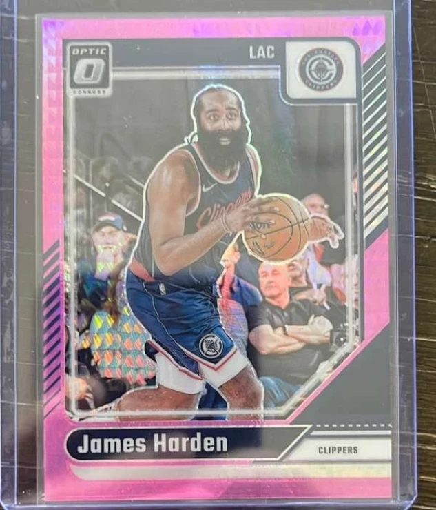This is a nice example of a 2024-25 Donruss Optic - Hyper Pink #211 James Harden