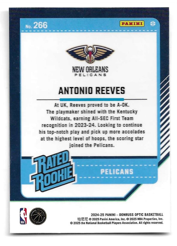 2024-25 DONRUSS OPTIC RATED ROOKIE #266 ANTONIO REEVES (RC)