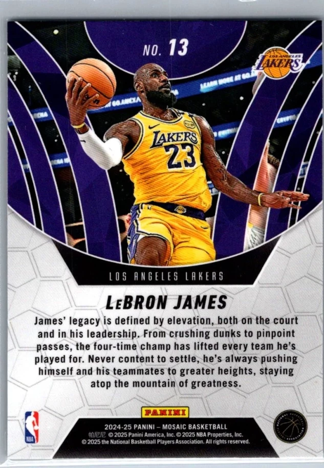 This is a nice example of a 2024-25 Panini Mosaic #13 LeBron James Elevate