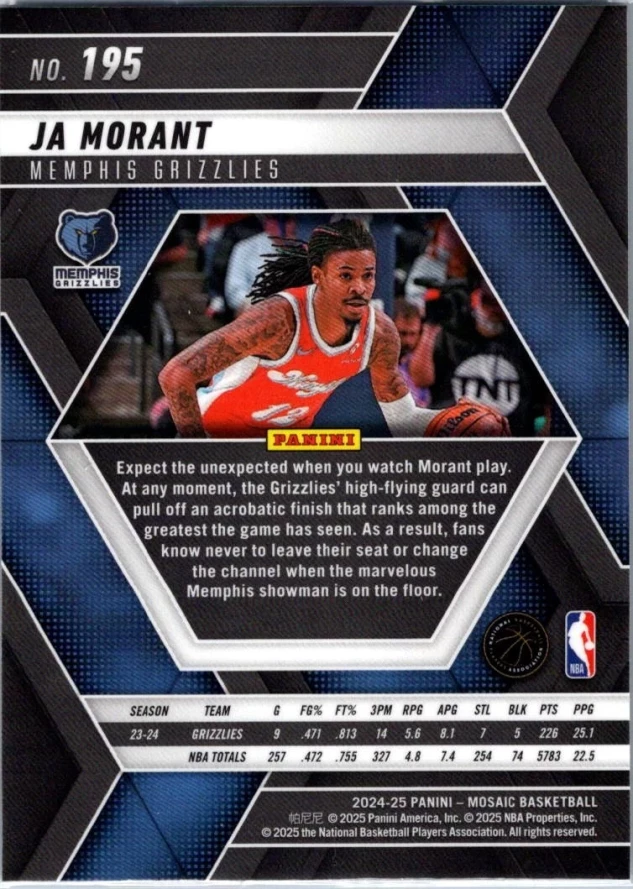 This is a nice example of a 2024-25 Panini Mosaic #195 Ja Morant