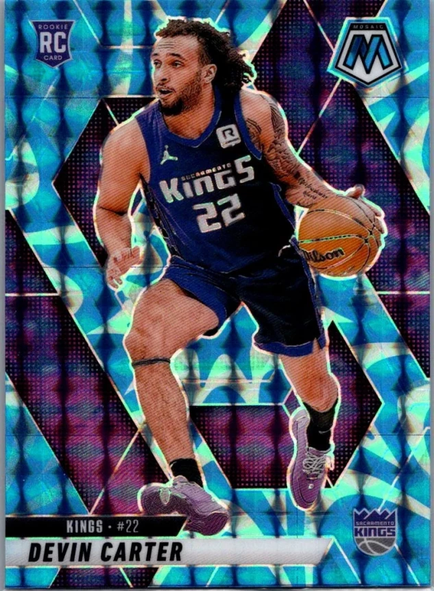 This is a nice example of a 2024-25 Panini Mosaic #229 Devin Carter Reactive Blue Mosaic