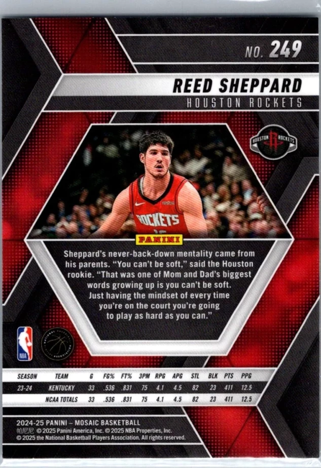 This is a nice example of a 2024-25 Panini Mosaic #249 Reed Sheppard