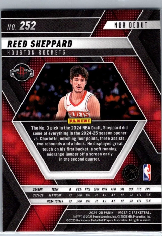 This is a nice example of a 2024-25 Panini Mosaic #252 Reed Sheppard