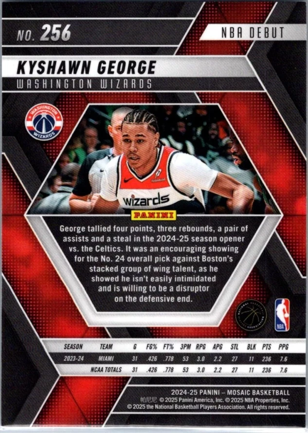 This is a nice example of a 2024-25 Panini Mosaic #256 Kyshawn George Base Mosaic
