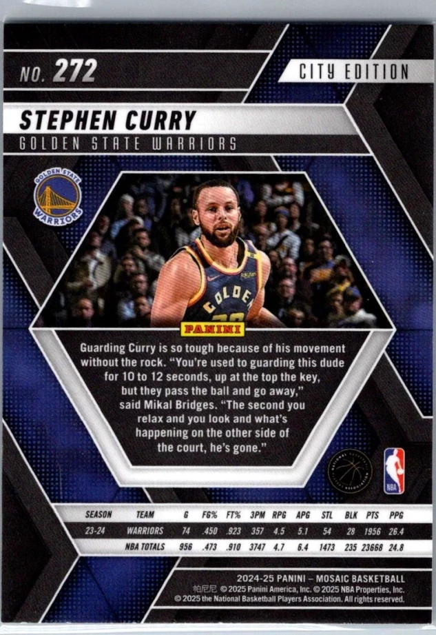 This is a nice example of a 2024-25 Panini Mosaic #272 Stephen Curry