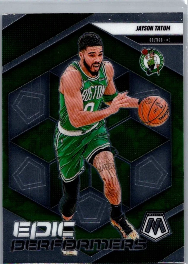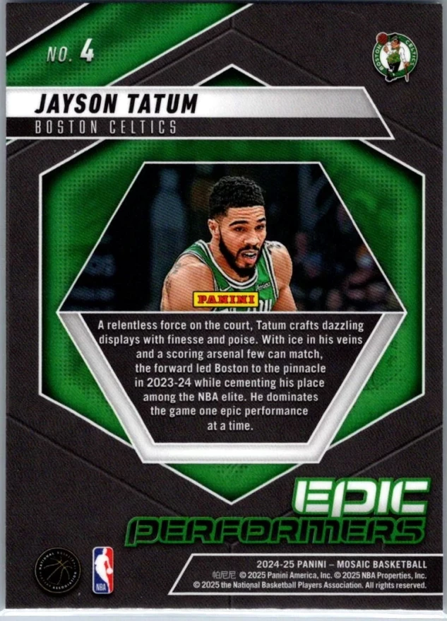 This is a nice example of a 2024-25 Panini Mosaic #4 Jayson Tatum Epic Performers