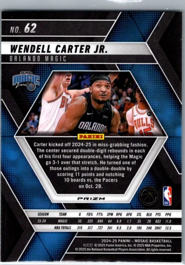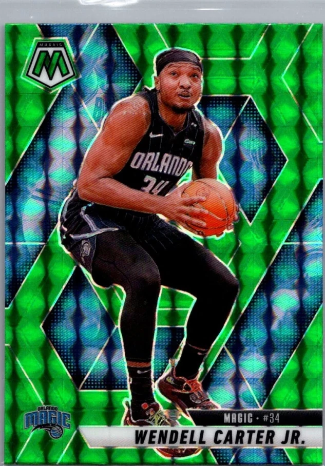 This is a nice example of a 2024-25 Panini Mosaic #62 Wendell Carter Jr. Green Mosaic