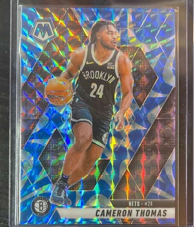 This is a nice example of a 2024-25 Panini Mosaic - Reactive Blue Mosaic #8 Cameron Thomas