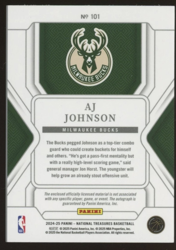 2024-25 PANINI NATIONAL TREASURES BASKETBALL - TRUE NT RPA BRONZE AJ JOHNSON ON CARD AUTO PATCH ROOKIE AUTO /49