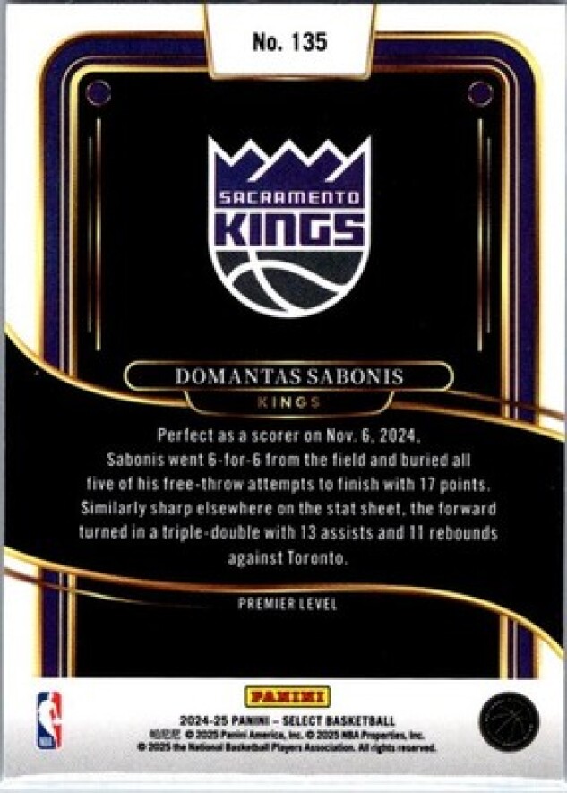 This is a nice example of a 2024-25 Panini Select #135 Domantas Sabonis Blue (Retail)