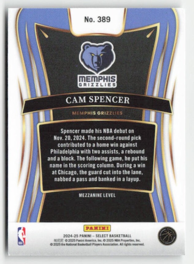 You are purchasing a 2024-25 Panini Select Cam Spencer #389 RC. You will receive the exact item in the photographs. Thank you for looking.