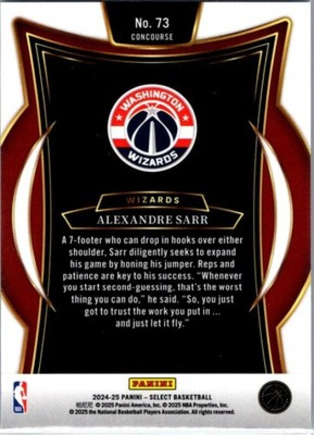 This is a nice example of a 2024-25 Panini Select #73 Alexandre Sarr Blue (Retail)