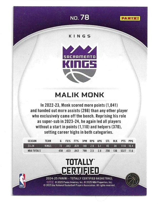 2024-25 TOTALLY CERTIFIED #78 MALIK MONK