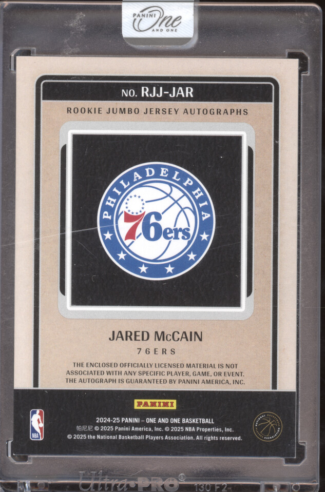 You are purchasing a 2024 Panini One and One Jared McCain #RJJ-JAR Rookie Jumbo Jersey Autographs 66/99 RC. You will receive the exact item in the photographs. Thank you for looking.