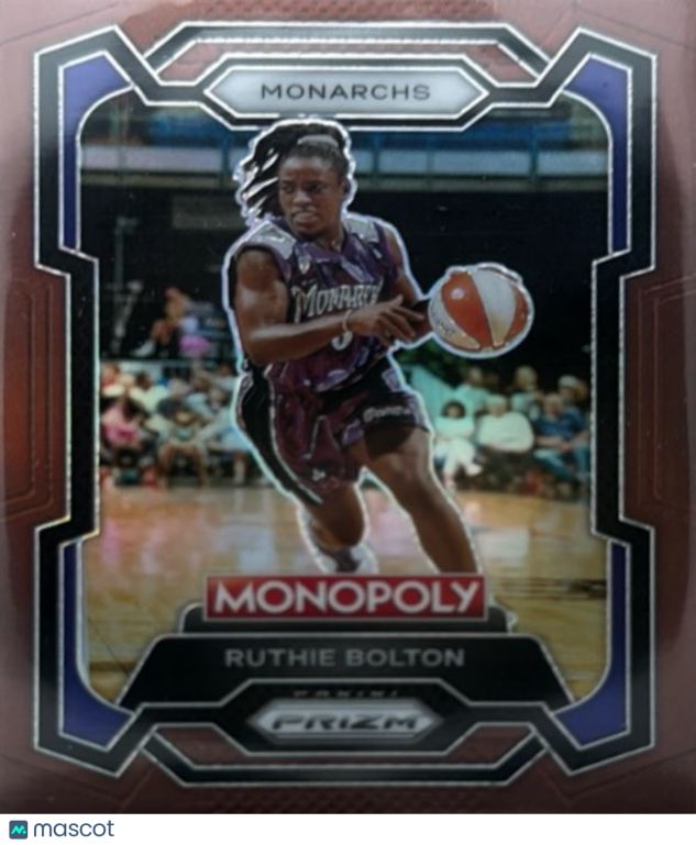 Don't miss your chance to own this standout 2024 Panini Prizm Monopoly WNBA Prizm parallel featuring Sacramento Monarchs legend Ruthie Bolton! This highly sought-after card is a must-have for any serious WNBA or Ruthie Bolton collector, and its near mint or better condition ensures it will be a prized addition to your collection. Grab this unique piece of basketball history before it's gone!