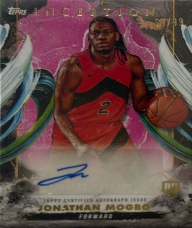 Don’t miss your chance to add this standout 2024 Topps Inception Rookie Autograph card of Jonathan Mogbo to your basketball card collection! Featuring the rising Toronto star, this highly sought-after card, numbered RA-JM, is a must-have for NBA fans and collectors looking for investment-worthy rookie cards in near mint or better condition.