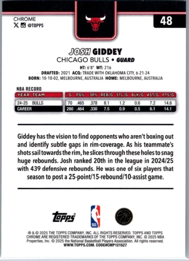 This is a nice example of a 2025-26 Topps Chrome #48 Josh Giddey