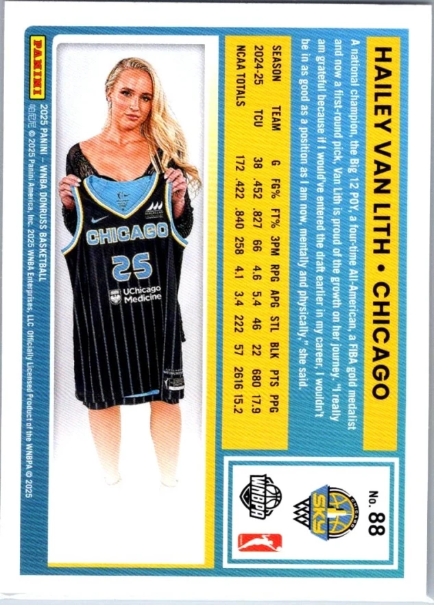 This is a nice example of a 2025 Donruss WNBA #88 Hailey Van Lith